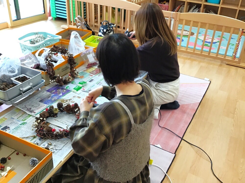 クリスマスリース作り会を開催しました♪参加してくださった保護者さまと、子育てについて話しをしながらお茶会も開きました。一人一人の個性が出るリースが完成しました。お家に飾って頂けると嬉しいです。楽しい時間をありがとうございました☆