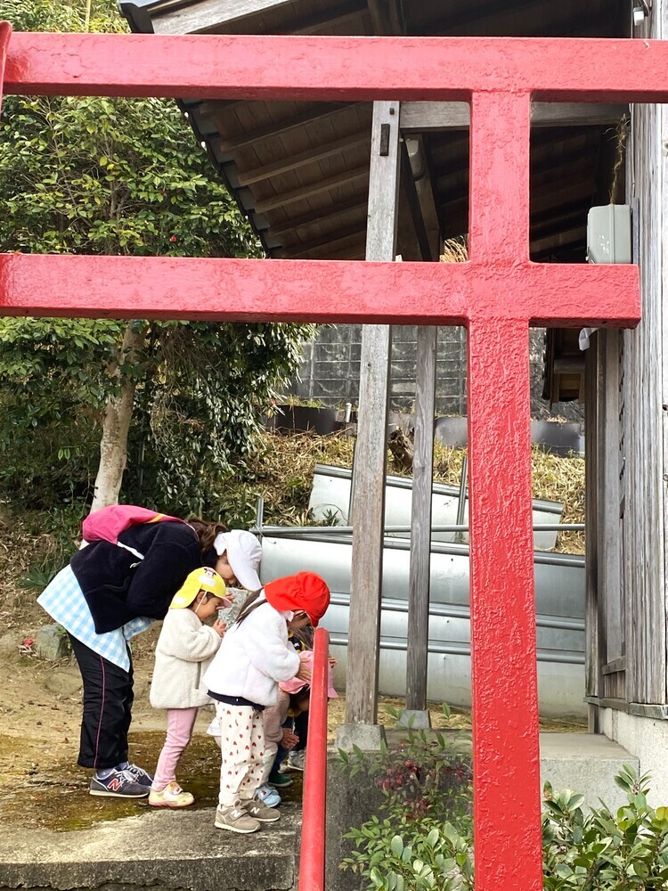 近くの亀崎神社へ初詣に行きました。キッズ保育園の子ども達の健康を祈願してきました。