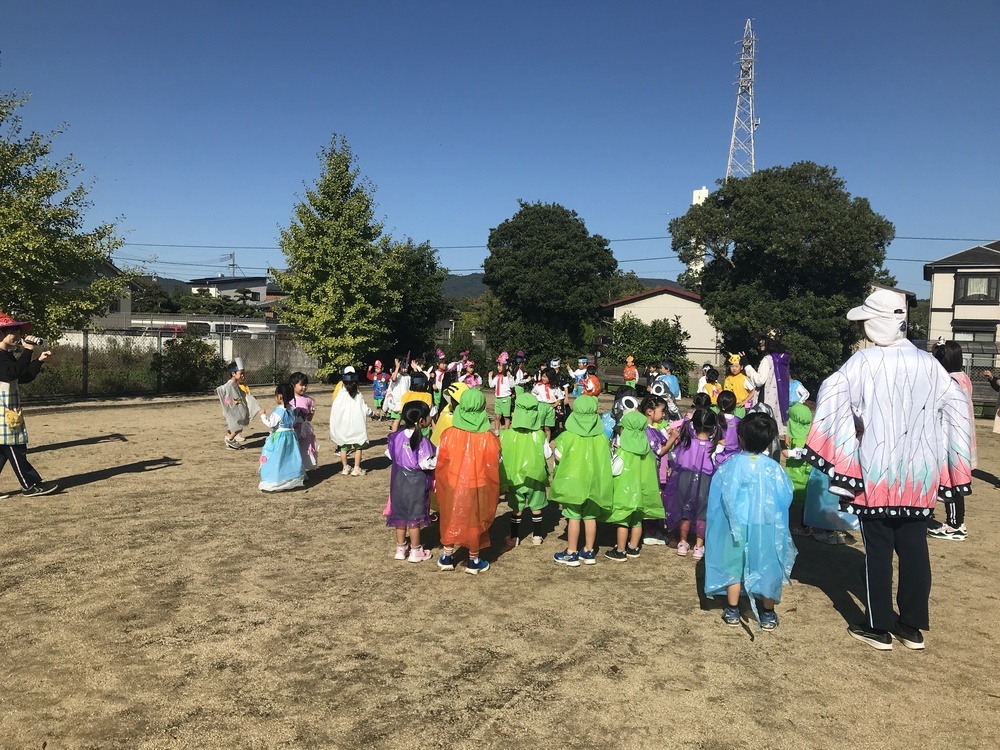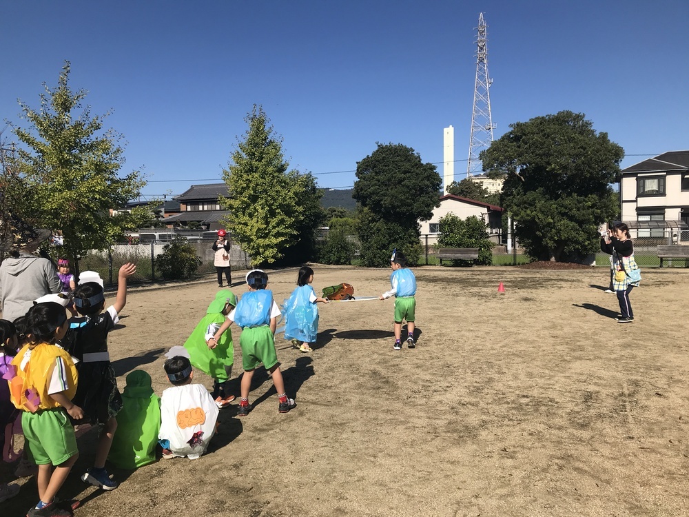 3・4・5才さんが公園まで仮装して歩き、ゲームを楽しみました♪